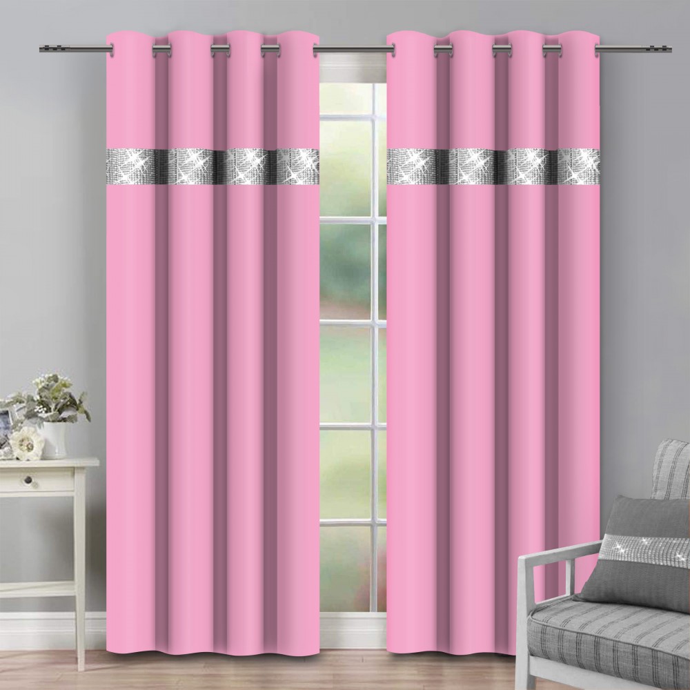 Úvod » Jednofarebné závesy » Hotový záves na krúžkoch so zirkónmi 140x250 cm svetloružový