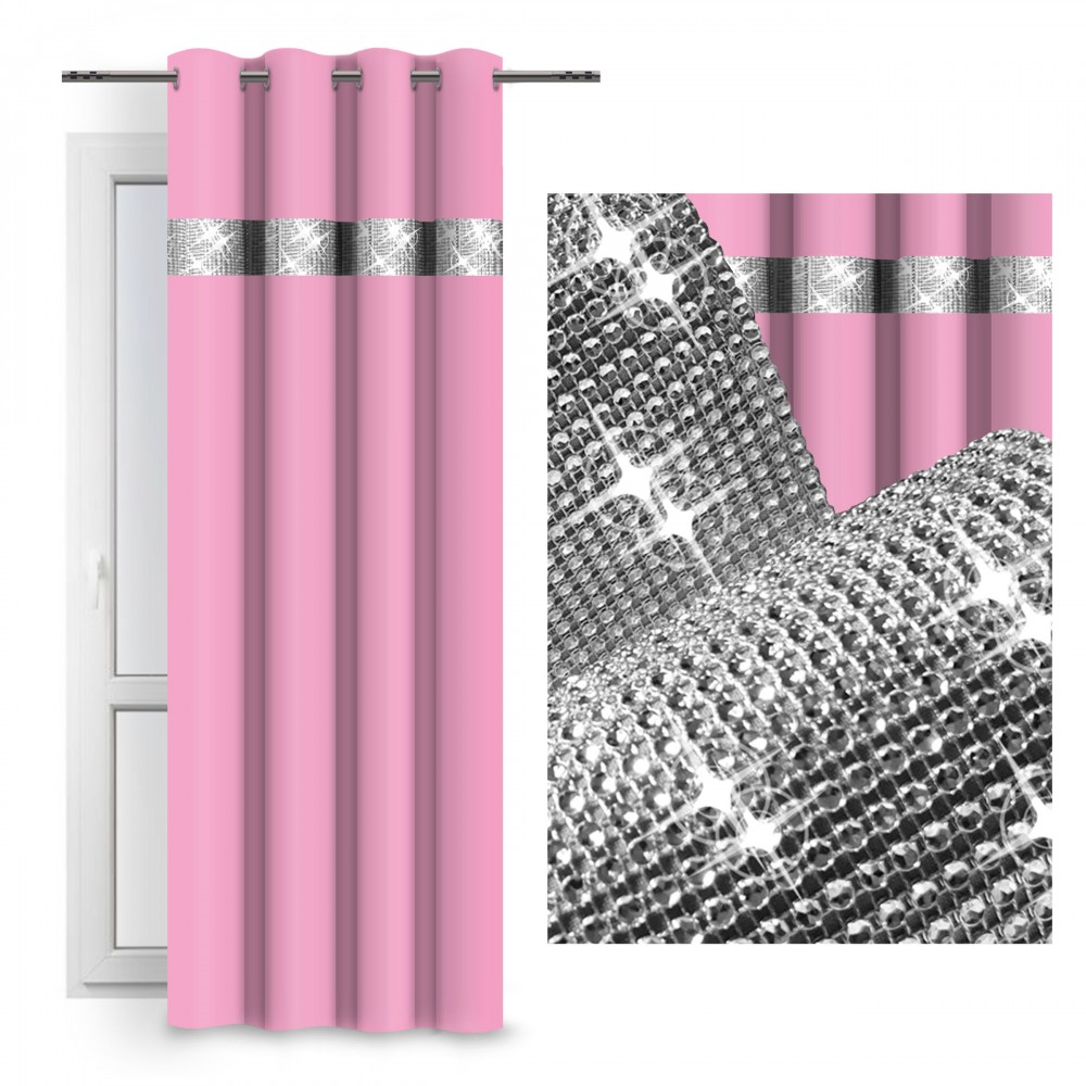 MIG50 Hotový záves na krúžkoch so zirkónmi 140x160 cm svetloružový |