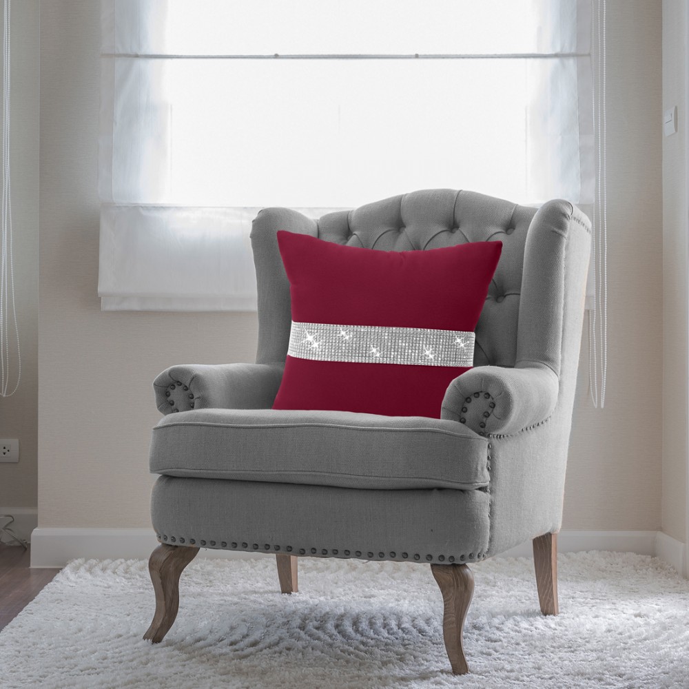Bordová dekoratívna obliečka na vankúš so zirkónom je vyrobená z vysoko kvalitnej dekoratívnej látky.