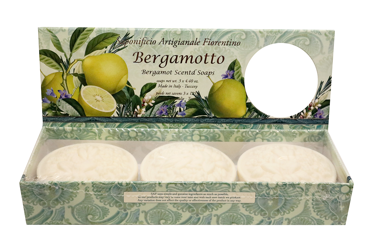 Úvod » Prírodné tuhé mydlá » Prírodné mydlo Bergamot 3x125 g SA Fiorentino