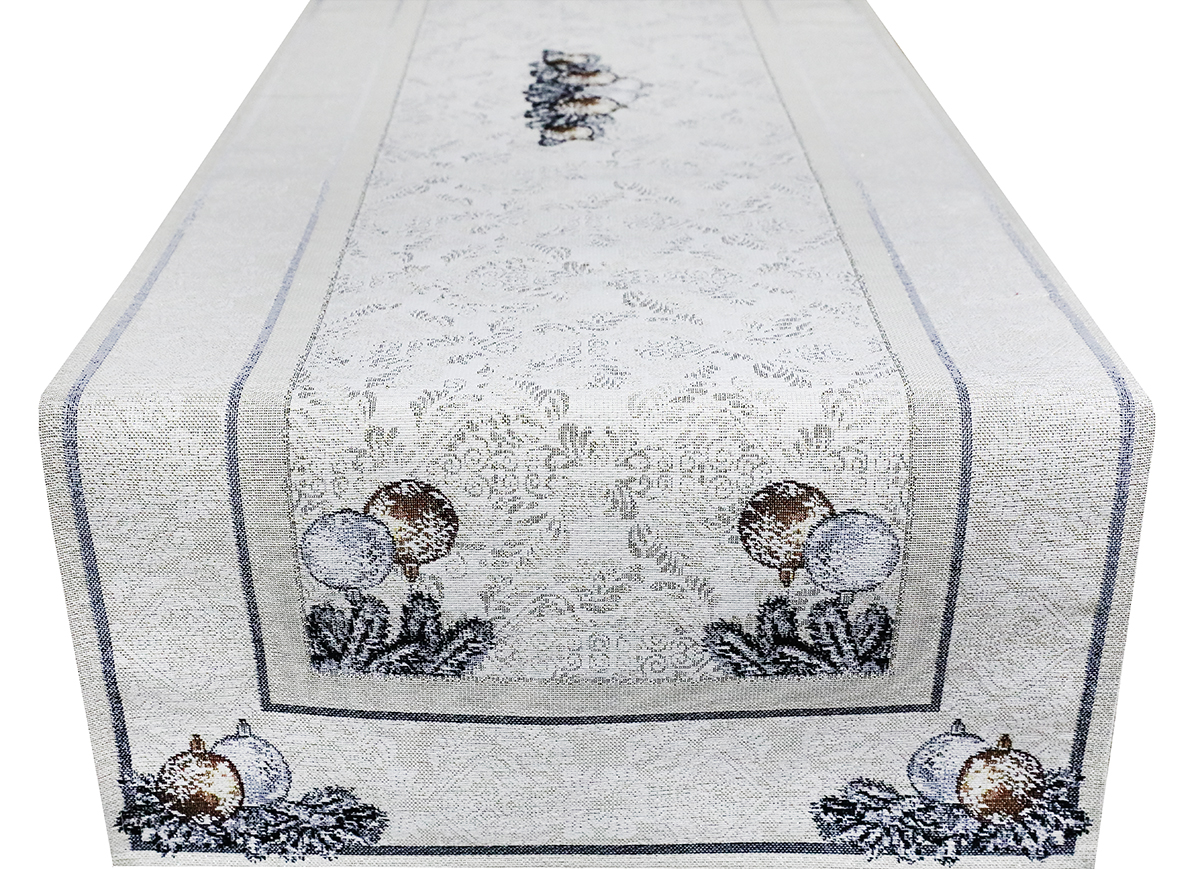 Vianočný gobelínový behún na stôl 45x140 cm vianočné gule s lurexom
