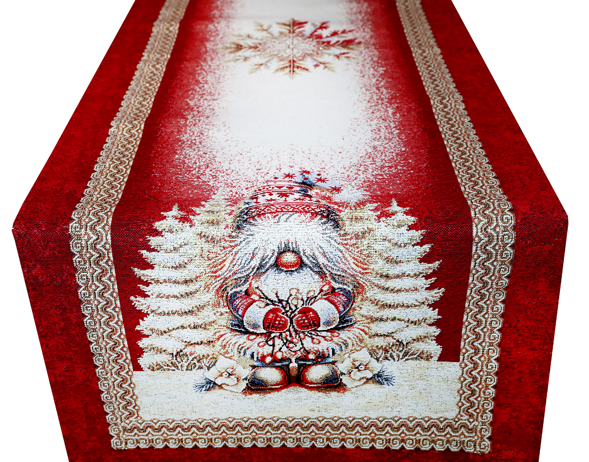 Úvod » Behúne na stôl » Vianočný gobelínový behúň na stôl 45x90 cm s vianočným škriatkom a lurexom