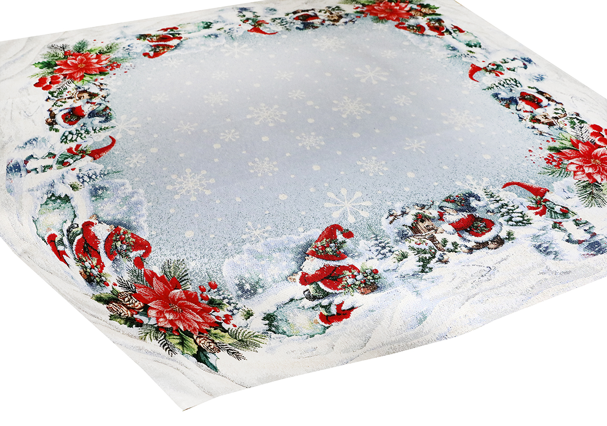 Vianočný gobelínový obrus na stôl 90x90 cm cm s lurexom škriatok na korčuliach